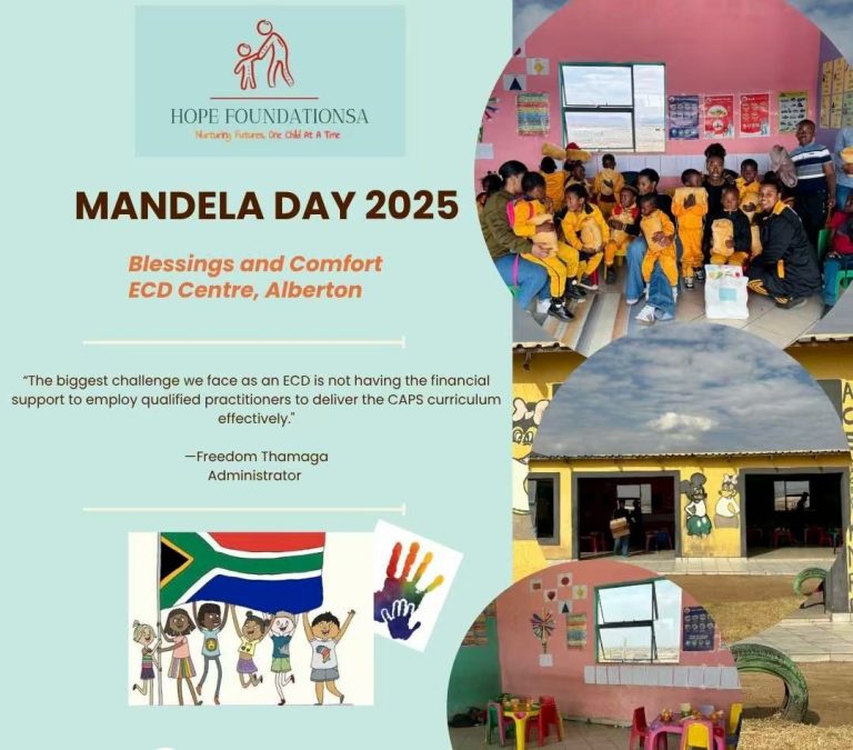 This year, on 18 July, Hope Foundation SA launched a heartfelt initiative focusing on unregistered and underfunded ECD centres in underserved communities across Johannesburg. We invited the community to nominate centres that they believed were most in need.